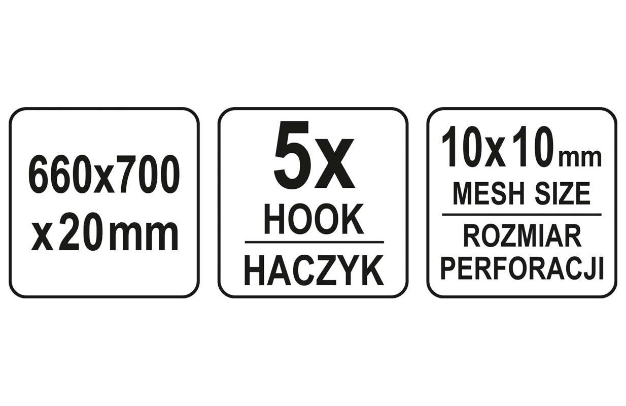 • перфорированная панель с размерами: 66 х 70 х 2 см