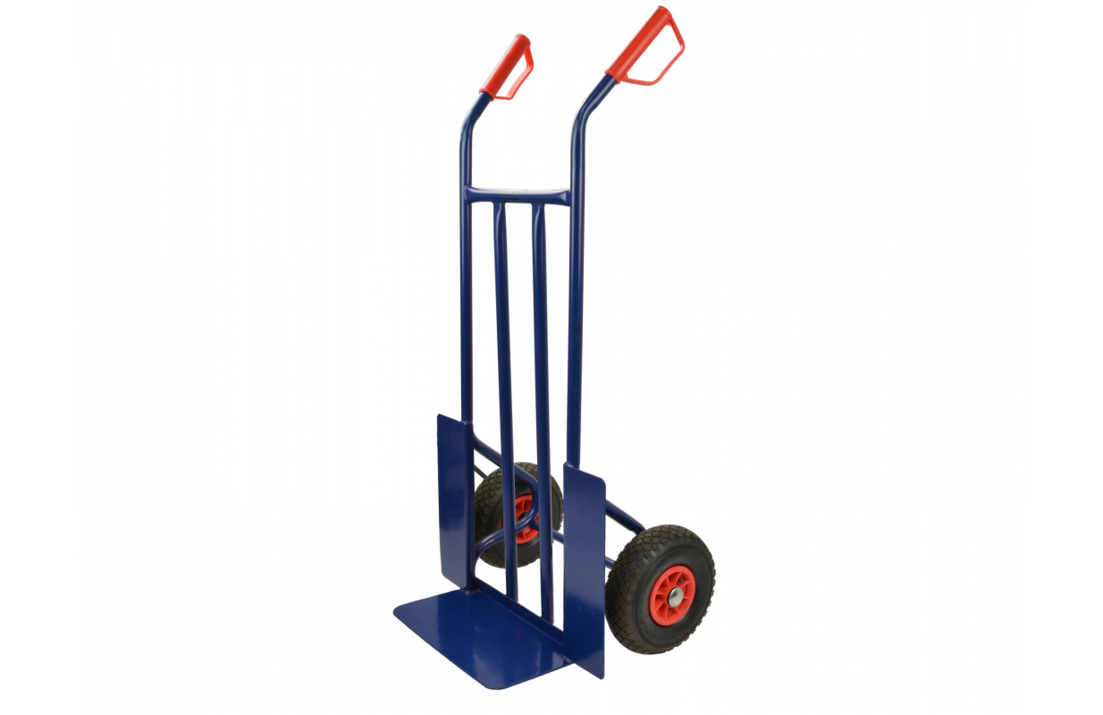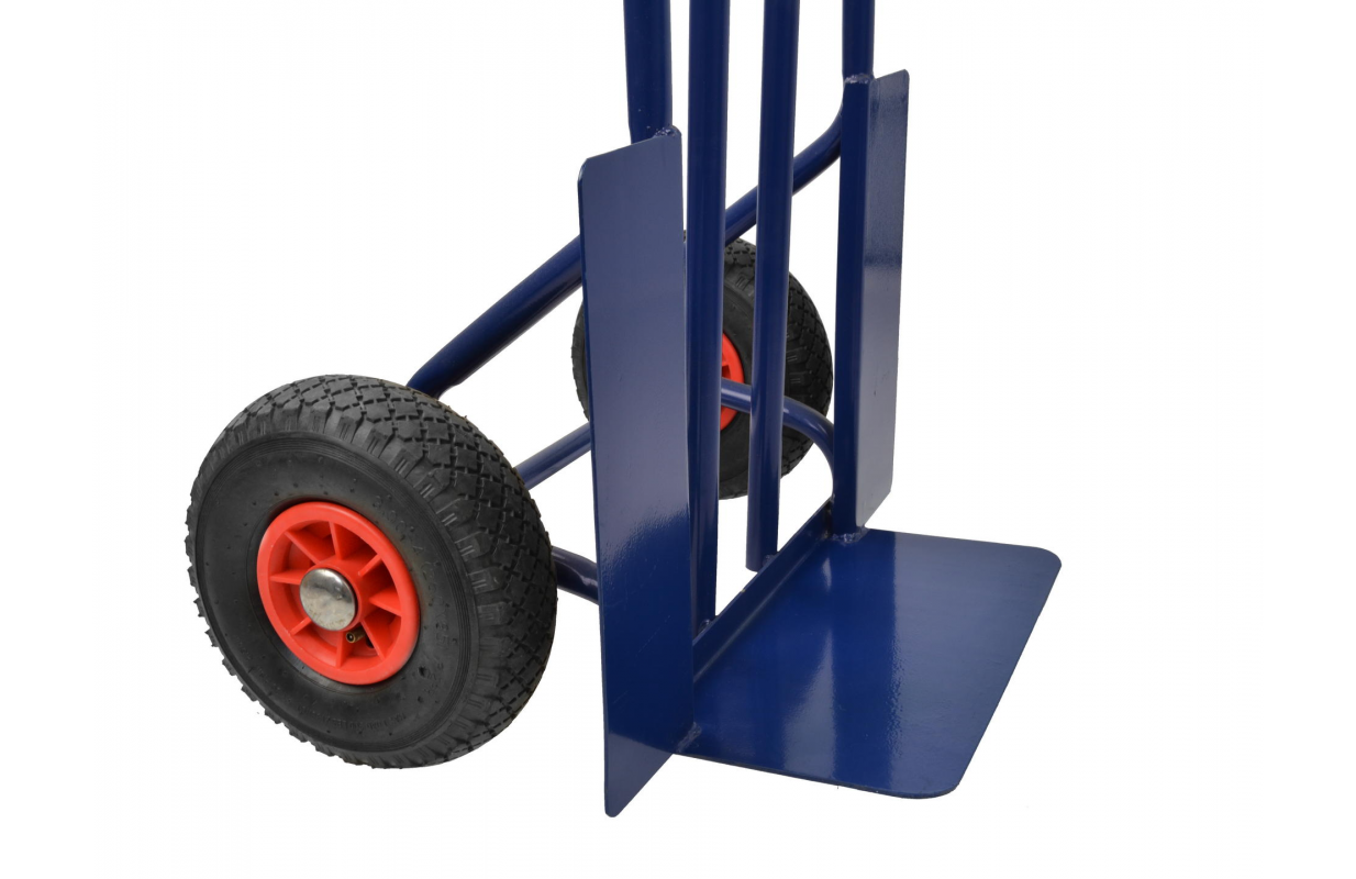 Это прочная тележка с широкой грузовой платформой для перевозки ящиков и подобных предметов. Тележка рассчитана на вес до 200 кг для весовых грузоперевозок. Она оснащена ручками управления и надувными опорными колесами для плавной транспортировки. Широкий протектор колес защищает пол от повреждений. Мягкие диски легко преодолевают неровности, пороги и т. д. Технические данные: