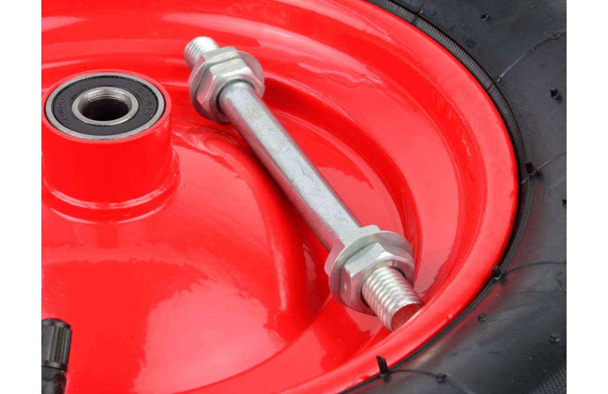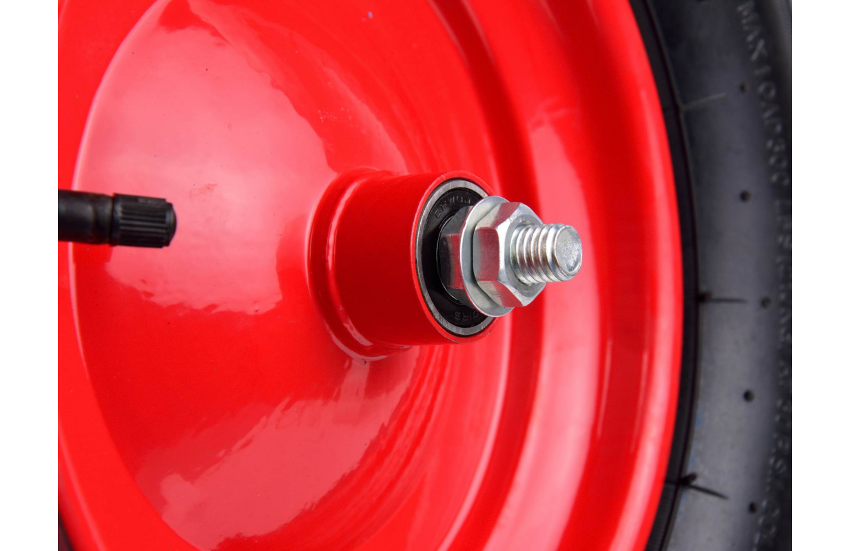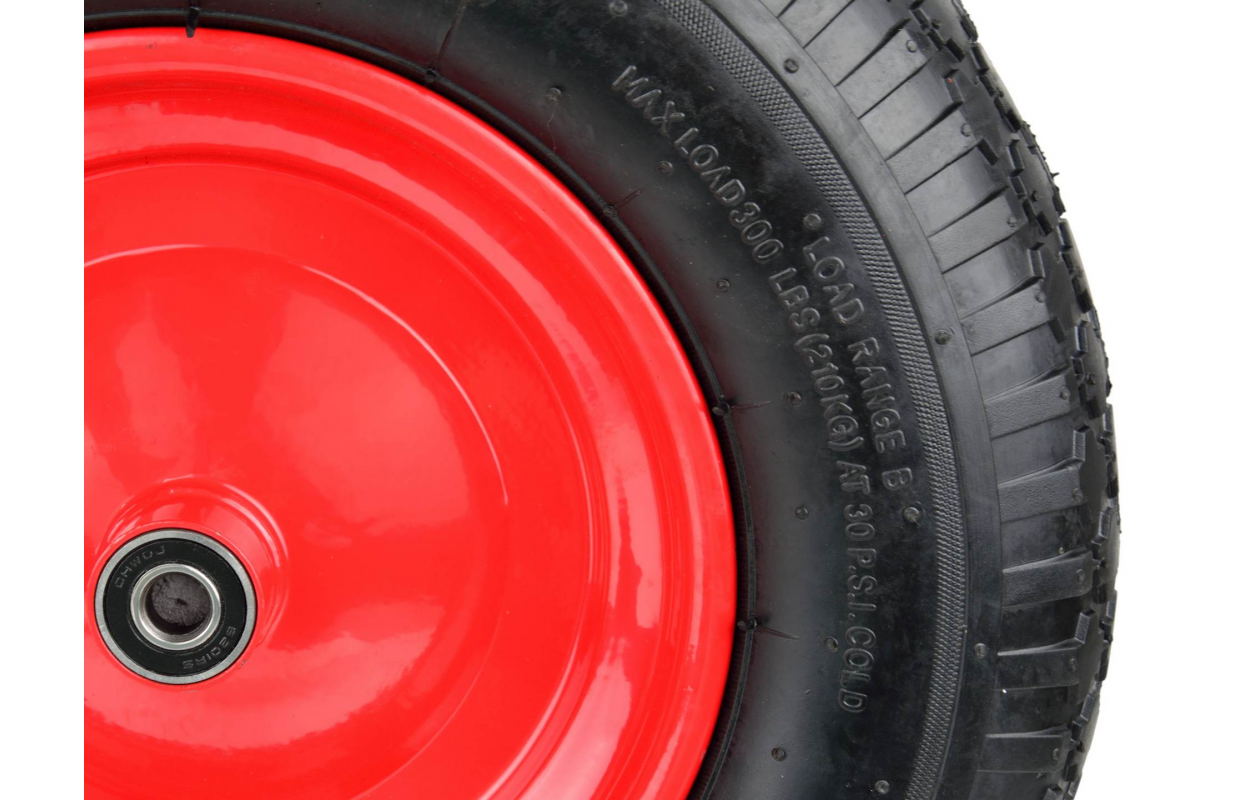 Тачка с максимальной нагрузкой до 210 кг . Прочный металлический обод с порошковым покрытием для повышенной устойчивости. Все изготовлено из высококачественных материалов.