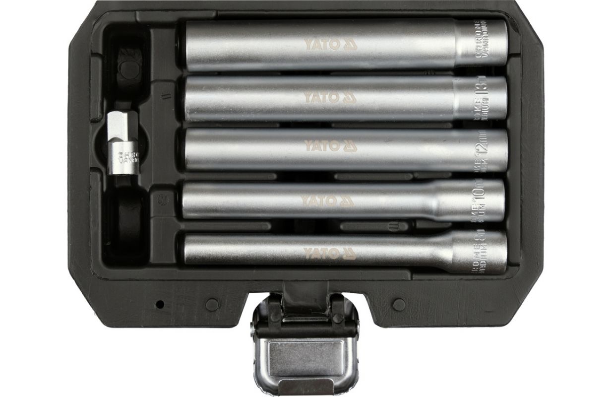 Профессиональный набор из пяти удлиненных головок в популярных размерах: 8, 10, 12, 13, 14 мм. Предназначен для ослабления глубоко ввинченных болтов и гаек, например, на бамперах, задних фонарях, петлях дверей и кузовных панелях. Идеален для работы в труднодоступных местах. Особенно полезен для регулировки троса ручного тормоза в автомобилях VAG, Opel, Vauxhall, BMW и Ford, среди прочих.