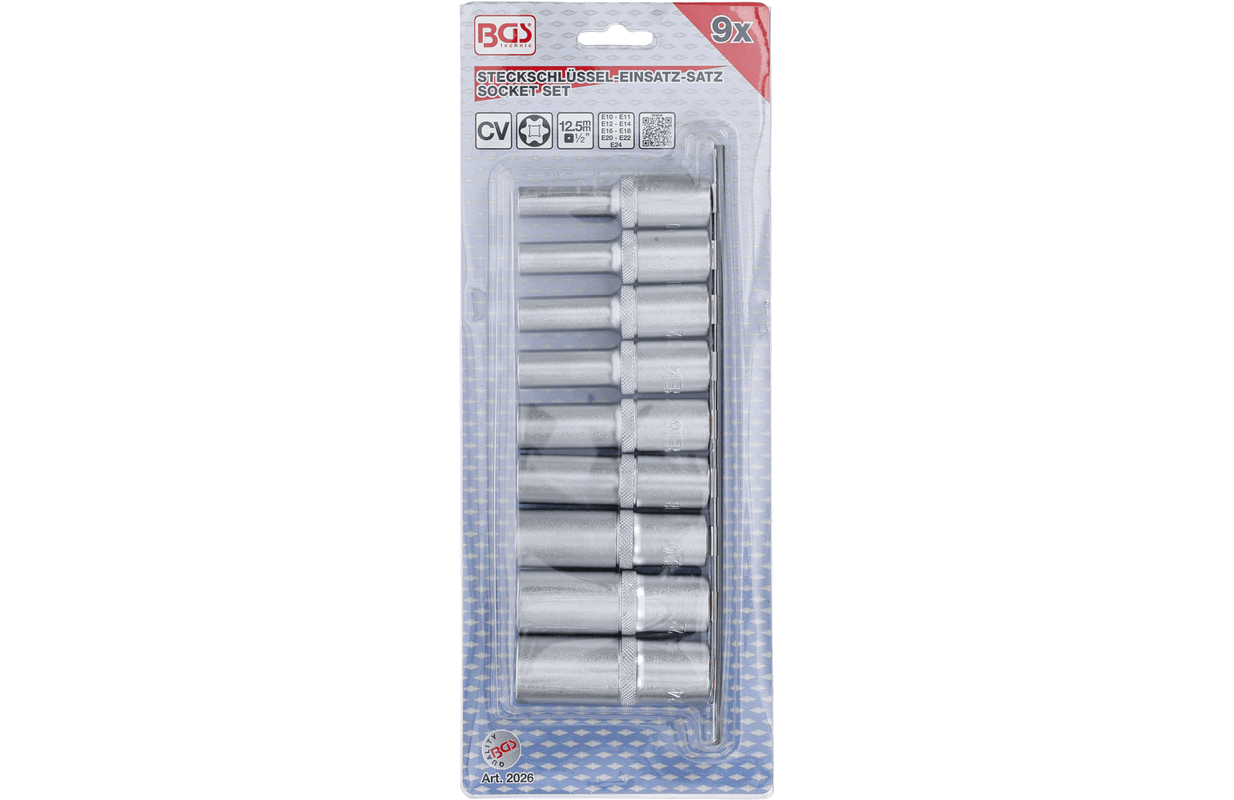 Набор торцевых головок E-Type | глубокие | 12,5 мм (1/2") | E10 - E24 | 9 шт. (2026)