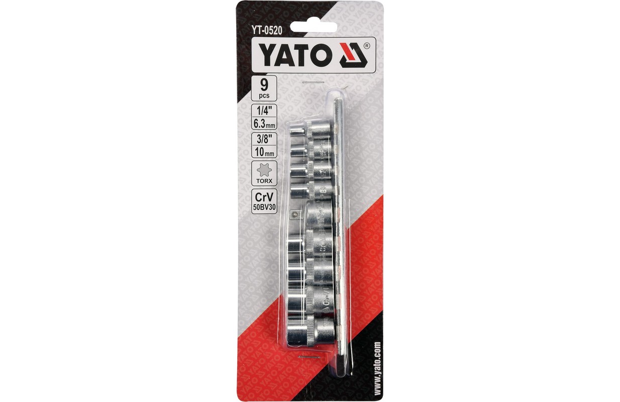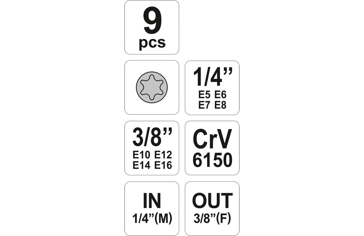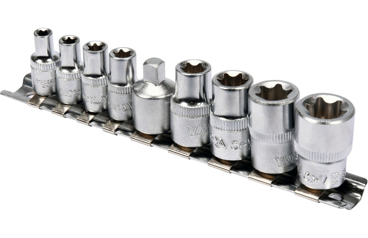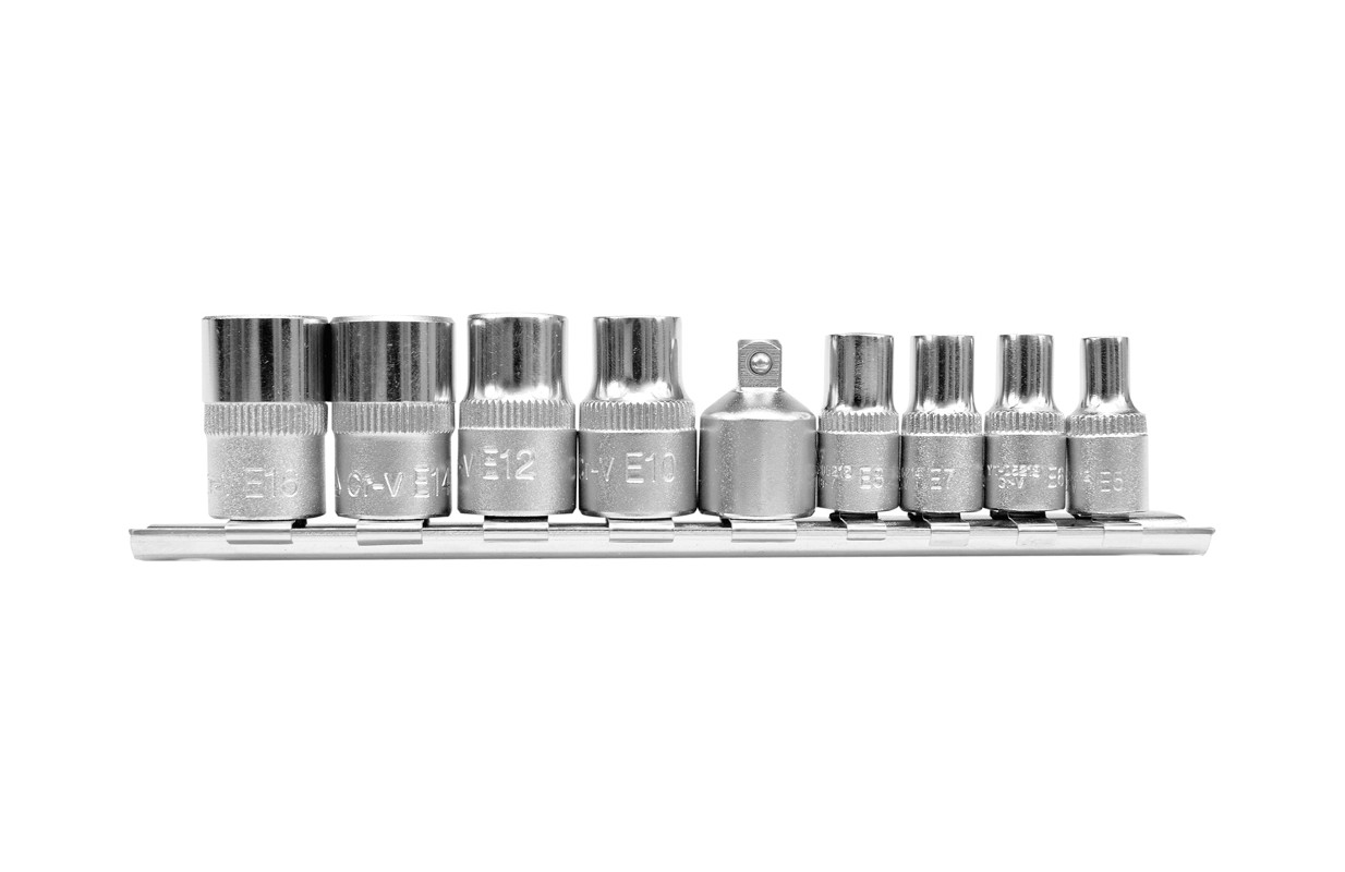 Набор торцевых головок E-Type | 6,3 мм (1/4") / 10 мм (3/8") привод | E5 - E16 | 9 шт. (YT-0520)