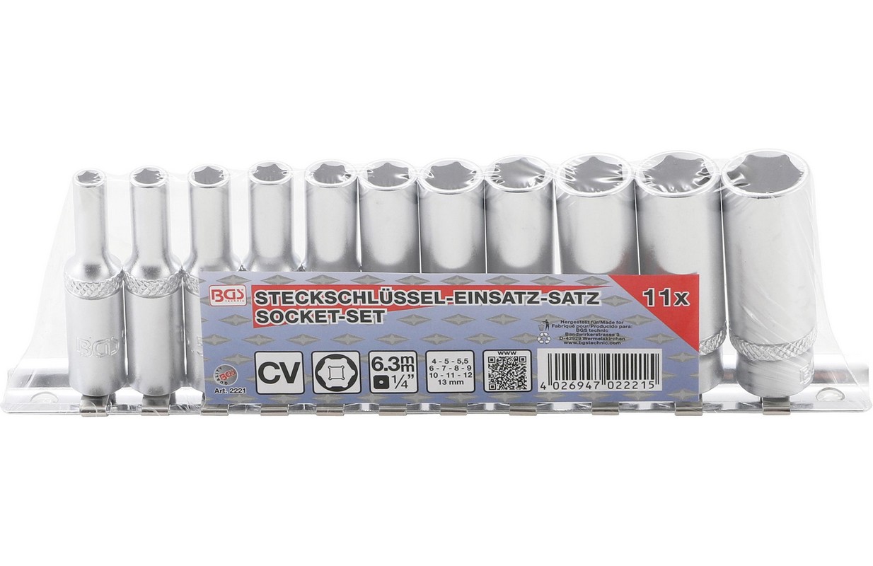 Набор насадок шестигран. глубокие | 6,3 мм (1/4") | 4-13 мм | 11 шт. (2221)