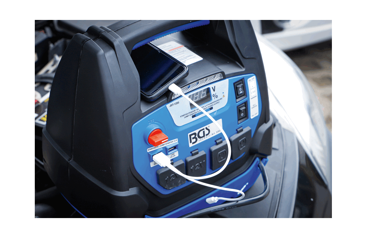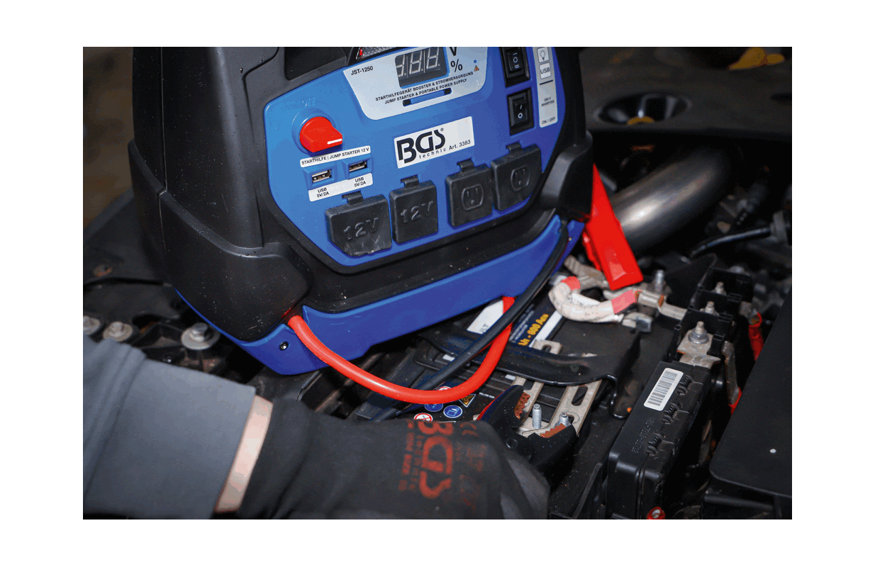 • Аварийный стартер на автомобилях с бортовой сетью 12 В (макс. 1250 А)