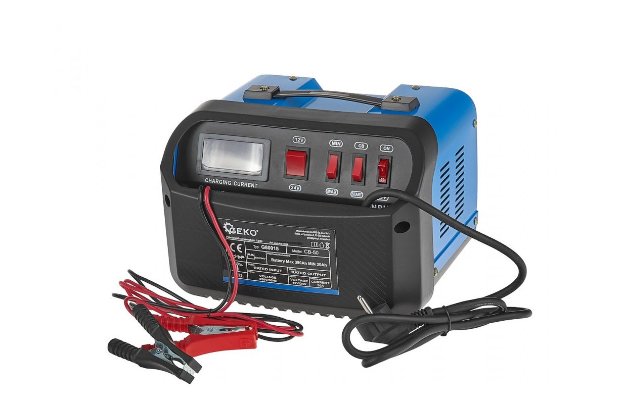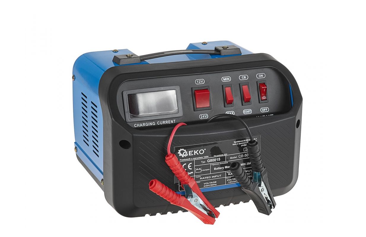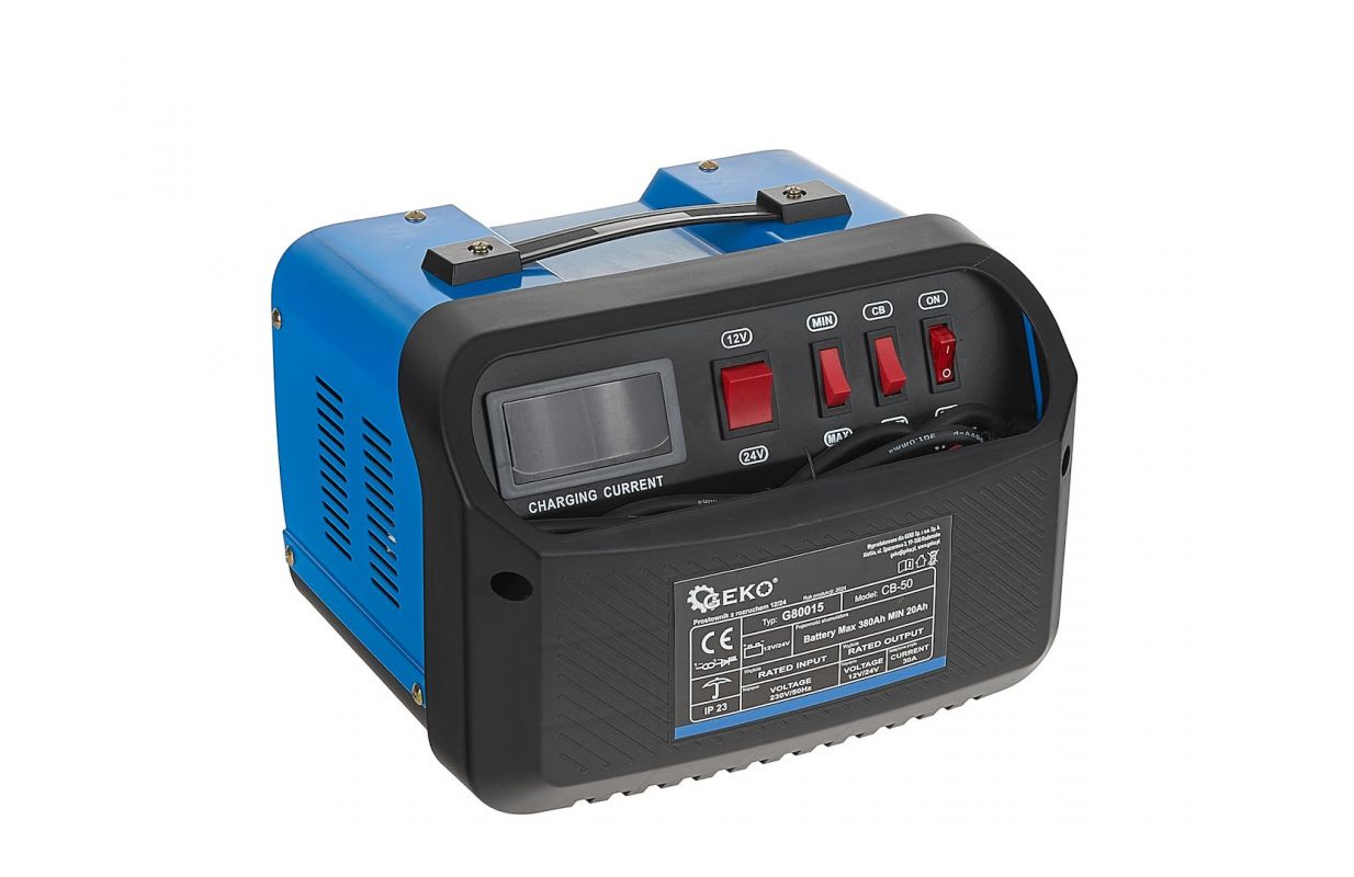 Выпрямитель GEKO CB-50 со стартером - это усовершенствованный инструмент, предназначенный для зарядки и поддержки запуска аккумуляторов емкостью от 20 Ач до 380 Ач и напряжением 12/24 В. Идеальный выбор для дома, мастерской и профессионального использования, обеспечивающий эффективность и безопасность использования.