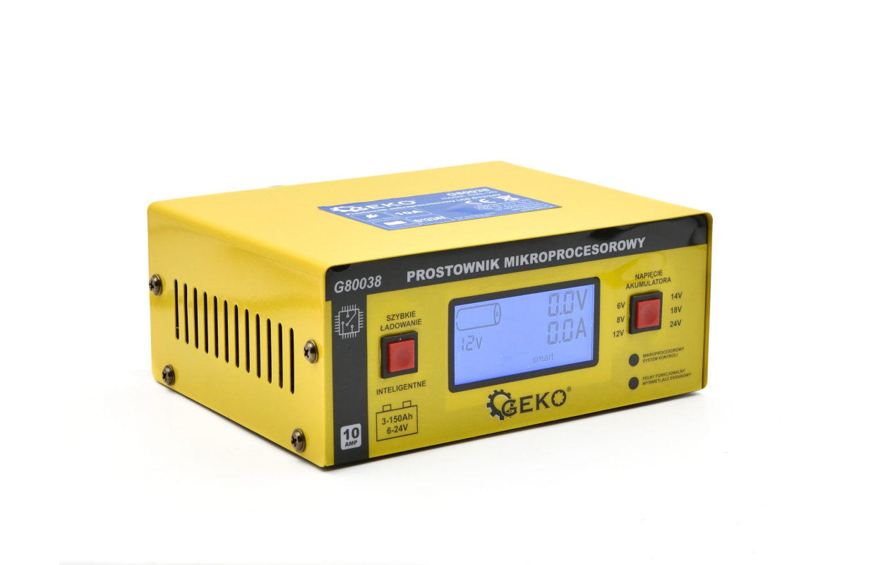 Микропроцессорное зарядное устройство для зарядки аккумуляторов 6В, 12В и 24В. Он позволяет заряжать аккумуляторы током от 0А до 10А. Эффективная зарядка обеспечивается 4-ступенчатой функцией автоматической зарядки и возможностью выбора типа зарядки: умная зарядка/быстрая зарядка.