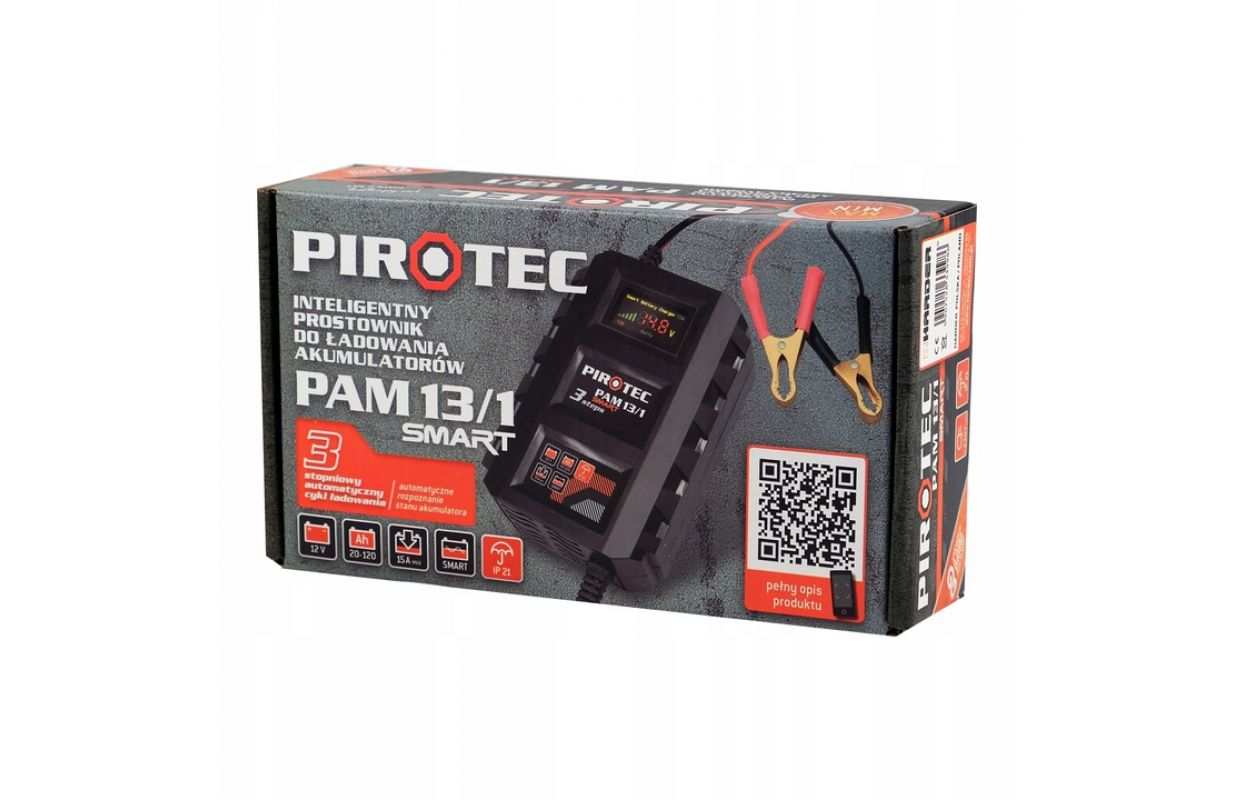• Зарядное устройство PIROTEC PAM 13/1 рекомендовано при зарядке стартерных аккумуляторных батарей напряжением 12 вольт с ёмкостью от 20 до 120 А/ч.